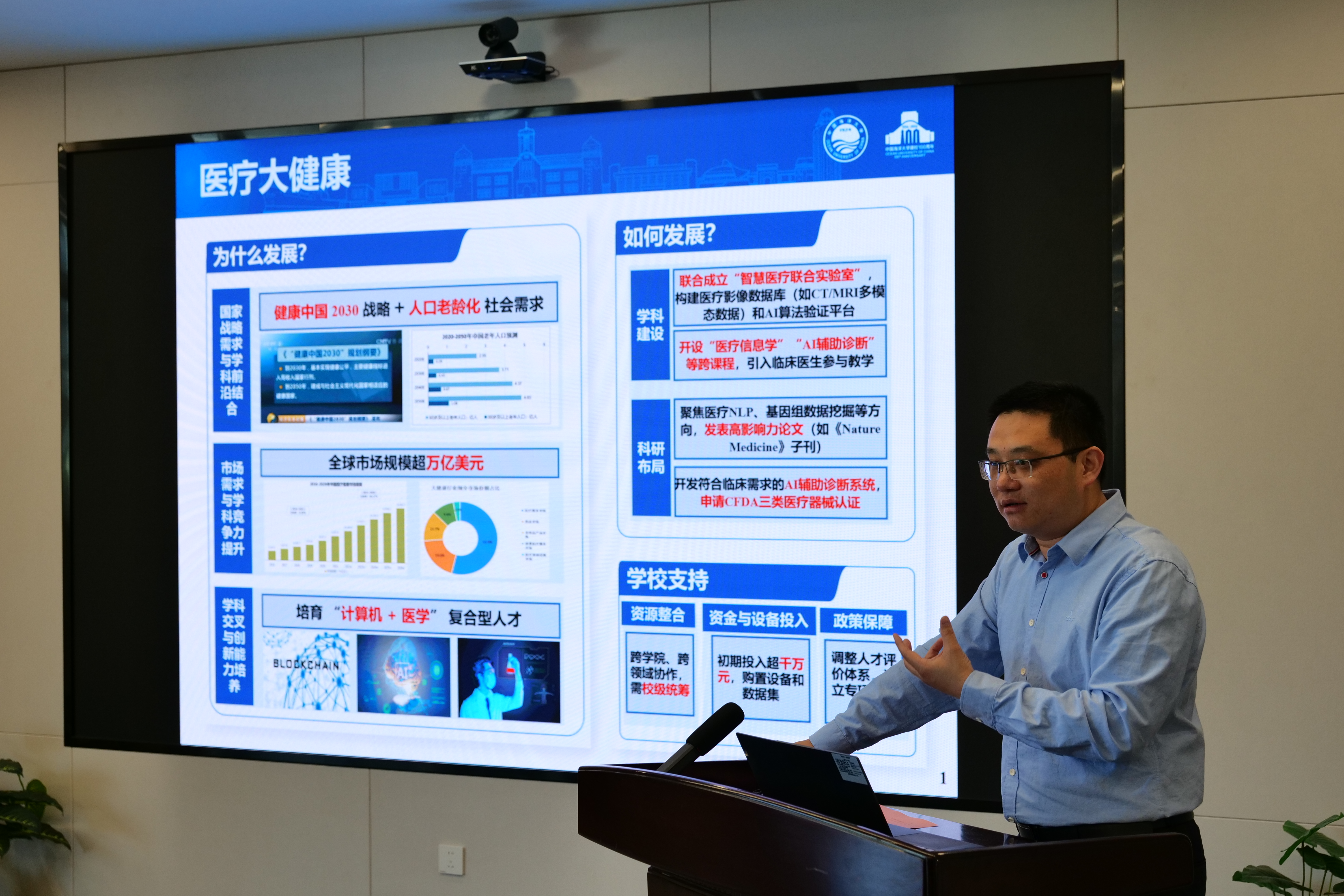 4月21日,中国海洋大学与潍坊市人民医院智慧医疗联合研究中心揭牌仪式在潍坊市人民医院举行,中国海洋大学信息科学与工程学部计算机科学与技术学院副院长夏辉对智慧医疗项目进展进行汇报。他表示,团队目前已在胸部CT肺结节诊断系统、胸部CT三维重建分析系统、消化系统肠镜智能检测系统、颈动脉斑块三维重建分析系统4个方向取得重要进展。同时指出,发展“医疗大健康”方向,既是服务国家战略的必然选择,也是突破学科边界、抢占学术制高点的关键路径。通过资源整合、跨学科协同和全链条创新,可推动高校从“跟随式研究”向“引领式创新”转型,最终形成“基础研究-技术转化-产业服务”的良性循环,为学科发展与国家竞争力提升提供核心支撑。